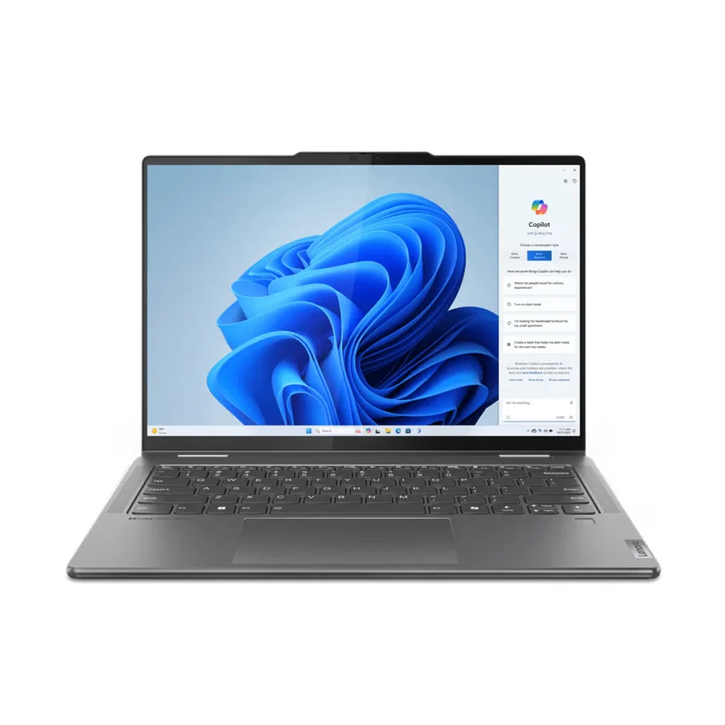 With Smarts to Match The Yoga 7i 2-in-1 Gen 9 laptop’s adaptability comes with equal smarts—Lenovo AI Engine+ is an ecosystem of intuitive features that enhances your creativity. Video calls are amazingly real on the 2MP FHD IR camera, which makes you look sharp and in the best light . Smart Noise Cancelling also lets your voice come through loud and clear by banishing unwanted background noise and interruptions. From team calls to fan livestreams, everyone won’t miss a sound or pixel. And Smart Login eliminates the need for passwords, your day starts instantly with just one look.
